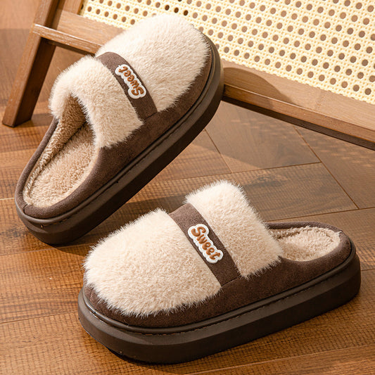 Velvet Thermal Non-slip Lambswool Cotton Slippers